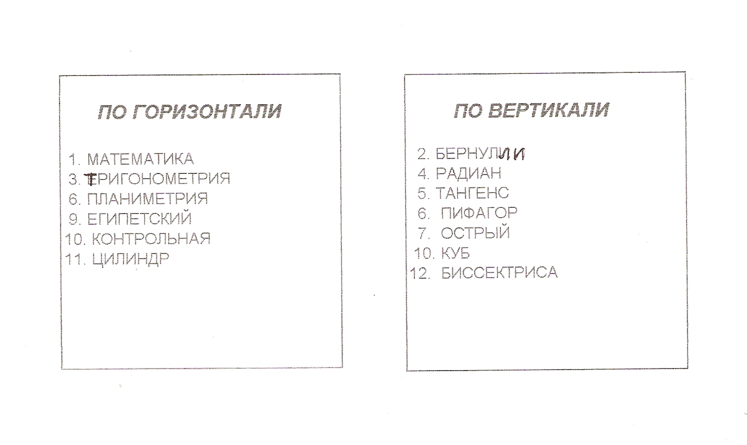 Ответ на кроссворд математический (Неделя математики) АвторLyudmula Abramochkina / Опубликовано22.01.2015Оставить комментарий Подготовила ответ Мартынова Анна: ПОДЕЛИТЕСЬ: АБРАМОЧКИНА ЛЮДМИЛА НИКОЛАЕВНА. Репетитор по математике. Одесса. Работаю по EMAIL, Skype и на дому, подробнее ЗДЕСЬ>>>.