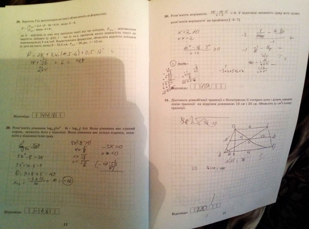 ОТВЕТЫ: 28 – 44,8; 29 – (-1,6); 30 – 19; 31 – 864;